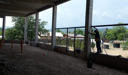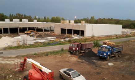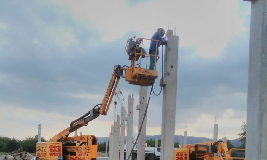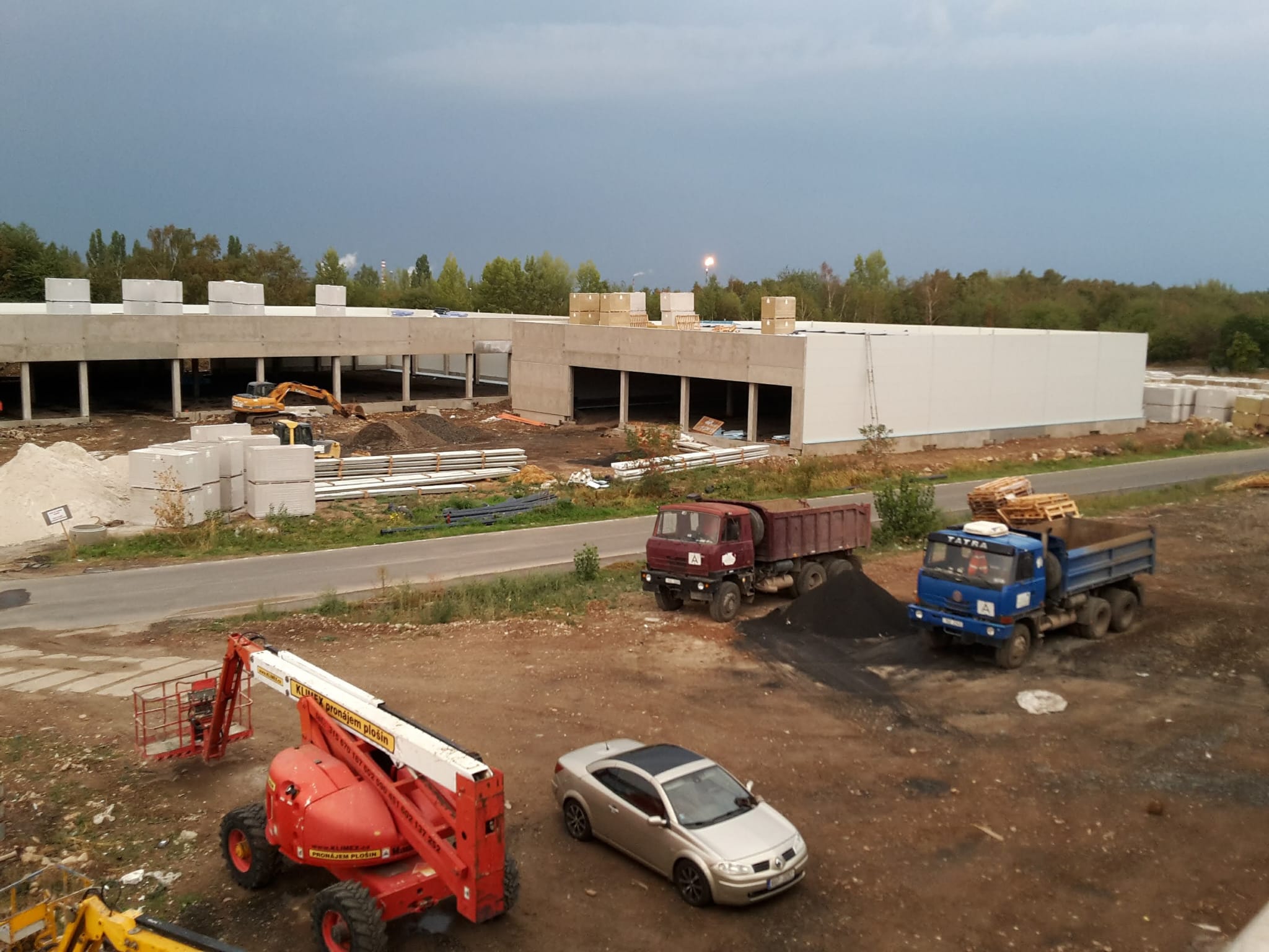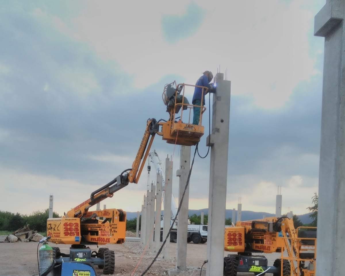 Ocelové konstrukce byly dopraveny na místo určení a začala jejich montáž za pomocí těžké techniky, plošin a montážních a svářecích pracovníků.