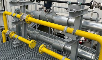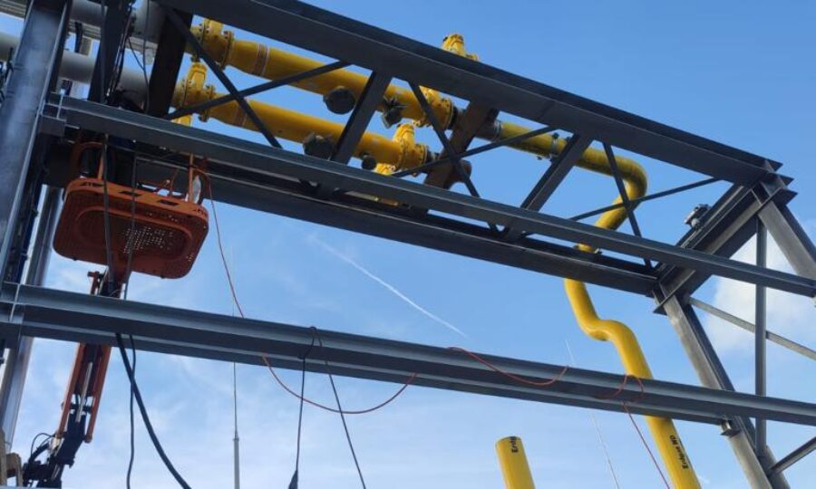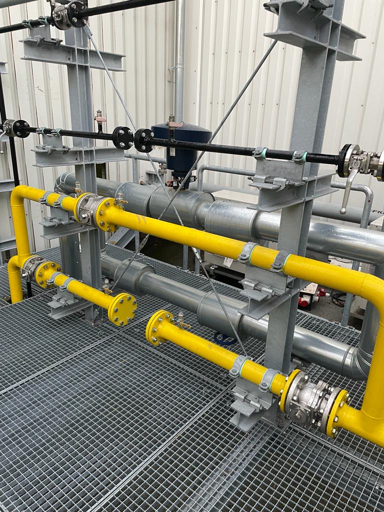 Do sklárny jsme navezli pracovní kontejnery, ve kterých svářeči začali svařovat předmontované kusy potrubí. Vedení projektu detailně rozpracovalo výkresy a etáže pro vedení plynového potrubí.