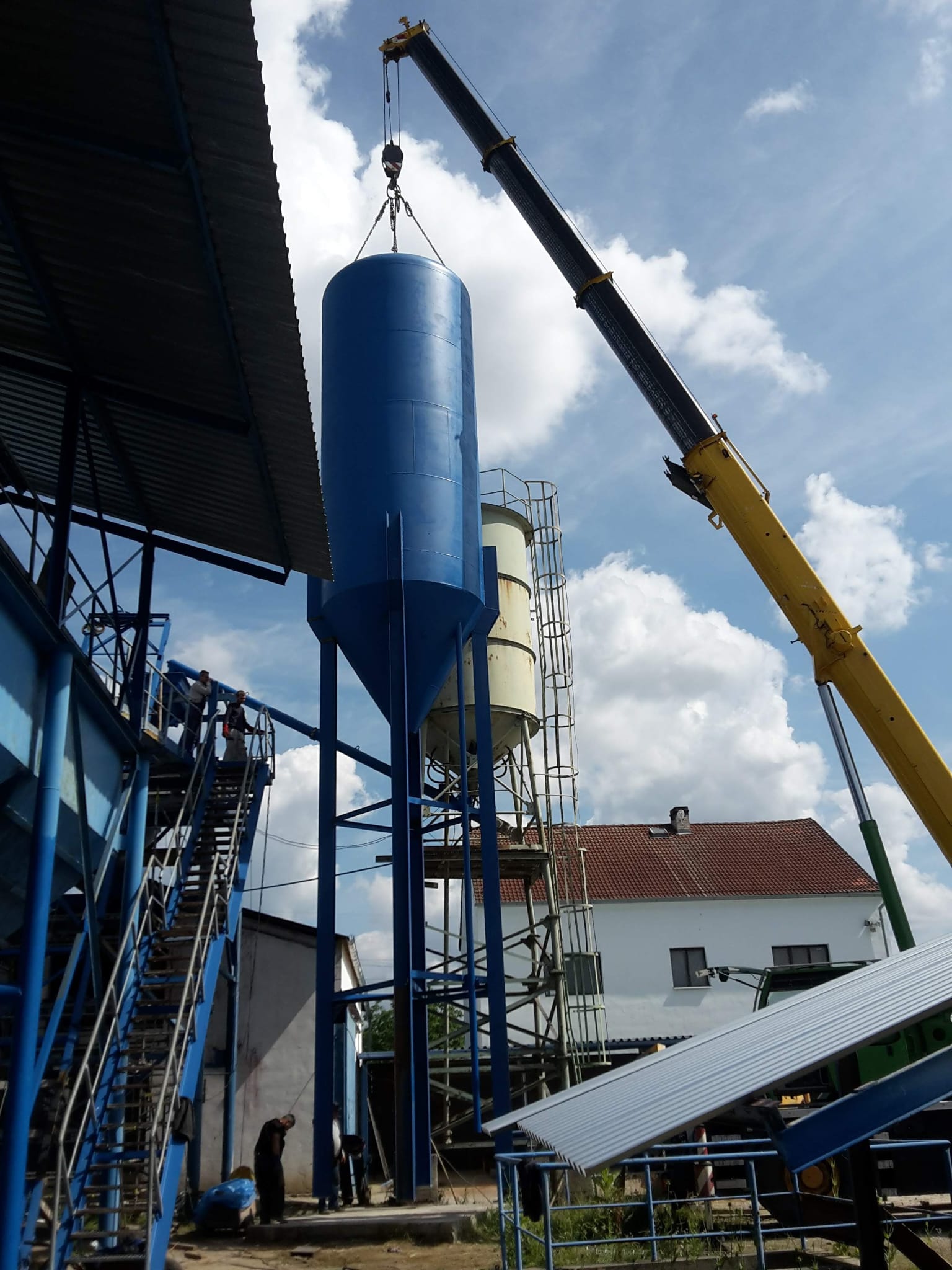 Na základě zákazníkem dodané výkresové dokumentace a materiálu proběhla výroba nových pásových dopravníků a celého sila. Lakování vyrobeného sila jsme realizovali na 3 etapy, aby byla zajištěna požadovaná kvalita. Doprava do betonárky a umístění na stavbě probíhaly za pomoci těžké jeřábní techniky. V místě betonárky následovala montáž a svařování úchytu celého sila k připravenému podstavci.